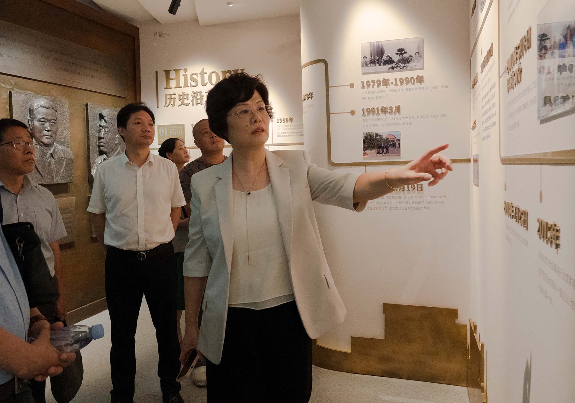 在蔣慧兒的帶領(lǐng)下,與會人員首先來到新投運(yùn)的中控室,詳細(xì)了解基礎(chǔ)建設(shè)、設(shè)施設(shè)備和系統(tǒng)功能等基本情況,認(rèn)真觀摩現(xiàn)場工作人員生產(chǎn)調(diào)度,并通過中央大屏觀看人員定位系統(tǒng)實(shí)時運(yùn)行動態(tài),直觀感受了數(shù)字賦能推動企業(yè)高質(zhì)量發(fā)展的生動實(shí)踐。在廠史館,蔣慧兒向大家介紹了“兩次搬遷、三次創(chuàng)業(yè)”的企業(yè)發(fā)展史、“一個基礎(chǔ)、五個支柱”的企業(yè)發(fā)展板塊和以“讓化工裝置在綠色園林中運(yùn)行”為主要價值追求的企業(yè)文化,讓大家領(lǐng)略了一座歷經(jīng)87年品牌沉淀的老基礎(chǔ)化工企業(yè)所散發(fā)出的勃勃生機(jī)。